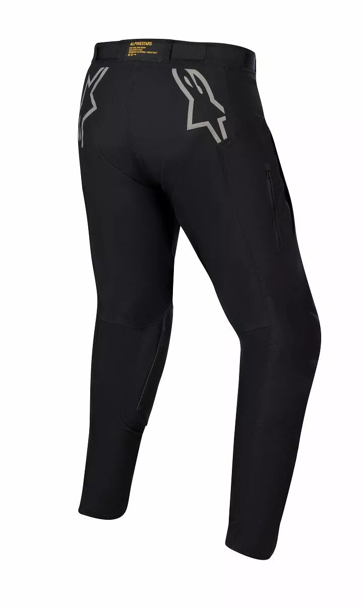Matière de toile polyamide robuste sur le châssis et le cuir de chèvre sur les genoux intérieurs pour la durabilité. , Matériau époustouflant respirant et extensible à l'arrière des jambes pour le confort., Entors ouverts sur les cuisses pour une ventilation supplémentaire., Conçu pour s'adapter aux protecteurs du genou d'Alpinestars.