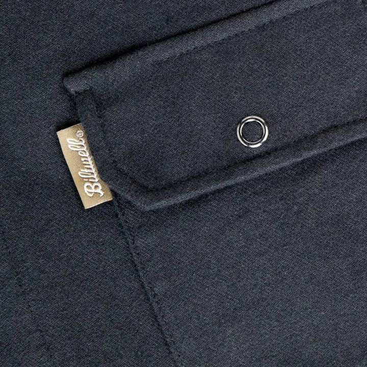 Confortable 6,5 onces 100% de coton poids lourd., Un bout-jet sur la plaque, les poignets, le col et les volets de poche sont plaqués en acier inoxydable. Au-dessus des poignets., Le volet de poche de poitrine a une fente discrète pour le stockage facile de glaces., Polyester unique-receivele, double receivele et surlock couture à travers., Étiquettes intérieures brodées et détails de feu extérieur.