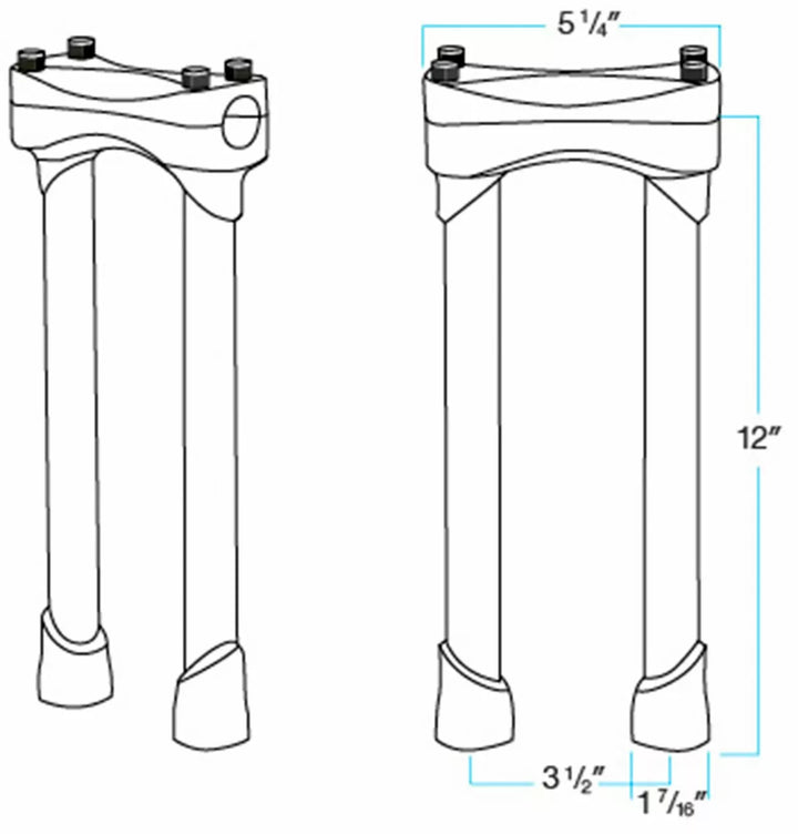 Pince supérieure en une pièce en acier coulé en investissement, TIG soudé 0,120 "Mur 4130 Chromoly en acier en acier avec des fils de 1/2" -13, motifs de boulons de pince de guidon s'adaptent aux supports Speedo / tach