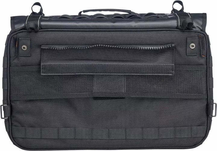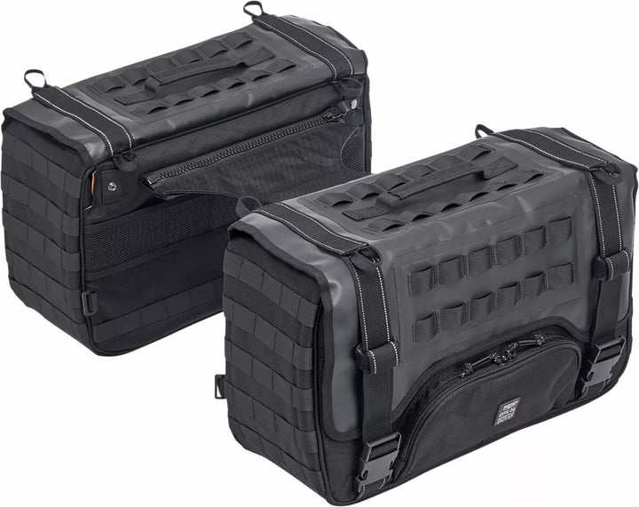 Engineered pour une installation facile et un ajustement universel sur une large gamme de motos, l'extérieur en nylon balistique de 1680 dent UV résiste à l'humidité et à la décoloration, forte et flexible des panneaux de mousse EVA à l'intérieur du compartiment principal ajouter la structure et le compartiment de durabilité se ferme les boucles rapides de la courte-trait Compartment Door Features Double Zippers With Single System on And Extra Gear, Two-Piece Mounting Yoke With Adjustable Hook and Loop Panel Fastens To Both Bags With Heavy-Duty Nylon Zippers, Bag Bottoms Reinforced With Heat Resistant, Heavyweight Canvas Panels, Main Compartments Features Three Elastic Strap Main Compartment to Secure Rolled Clothing, Fuel Bottle, or Other Gear, Mesh Document Pocket with Two Zippers Inside Waterproof Security Flap, High-Vis La doublure intérieure orange rend le contenu de repérage plus facile, caché caché com com com com com com com com com com com com come co com co com co com com come com come com come com come com come com come com come come come come come come Come come 15.25 "large x 7,25" deep (388 mm x 184 mm) Pocket extérieure Beeath Security Fap pour les documents et à un petit pochette, à doubler x 4,5 ”Tall (240 mm x 114mm) ClaMshe Pull Pulls Pulls Pull The Main Compartment, Double-side straps included for Securing Bag to Appropriate Mounting Points on Motorcycle, Universal Fit Works With A Variety of Aftermarket Saddlebag Support, Multiple D-Rings, Molle Points, and High-Strength Nylon Nylon Nylon Cords, Hand-sewn Seams with high-strength polyester Thread, Waterproof Nylon Rain Covers with Elastic Gathers and Drawstring Closure Provide Extra Protection In Conditions extrêmes