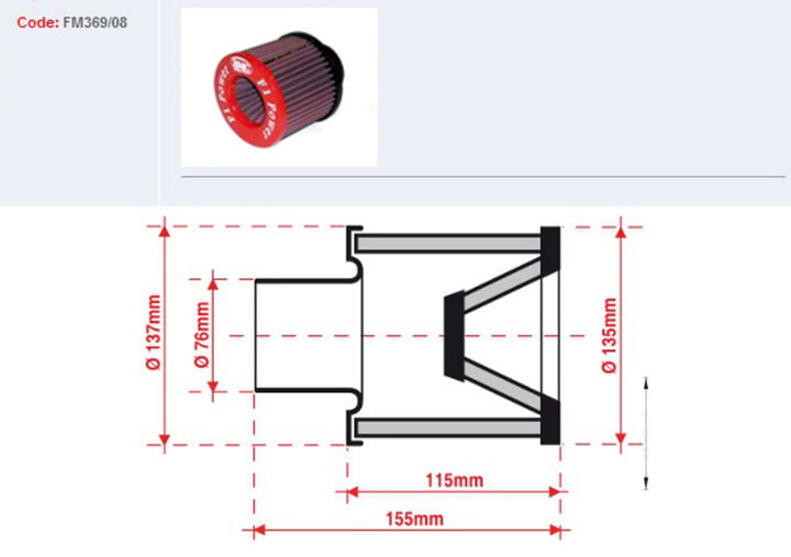 BMC Filtre à air effilé Ø76 mm - FM369 / 08 FM369 / 08