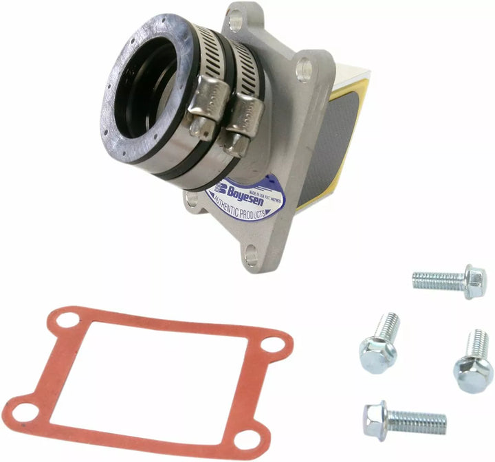 Maintenir la vitesse d'écoulement à travers la soupape et rediriger la charge d'admission pour plus de distribution uniforme aux ports d'admission, fabriqués facilement à des moulages et boulons en aluminium monobloc; Aucune modification nécessaire, fournir une réponse d'accélérateur plus rapide et plus nette et plus de Horspower dans la gamme de régime, la cage à roseaux conçue spéciale tient les roseaux à double étape de Boyesen, Boyen's Hot Rad Valve Rad Valve Turvey