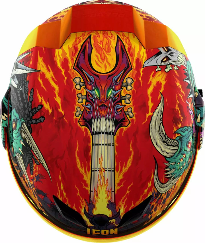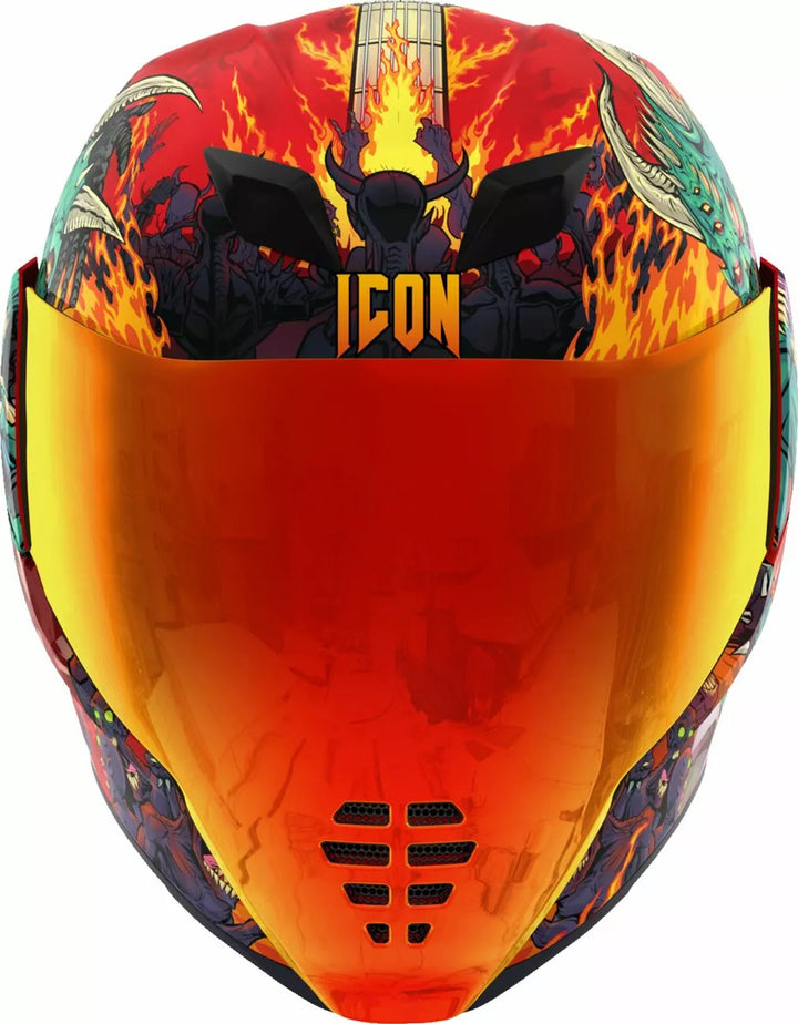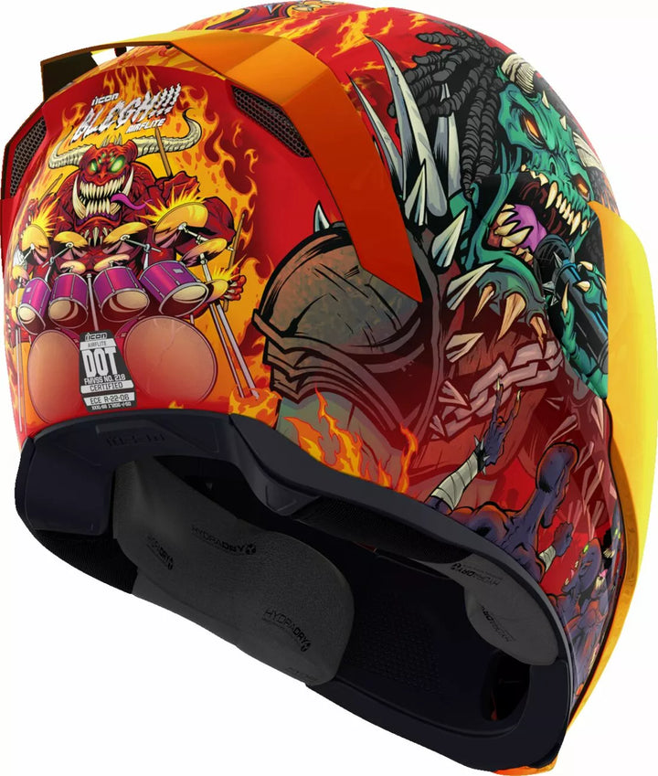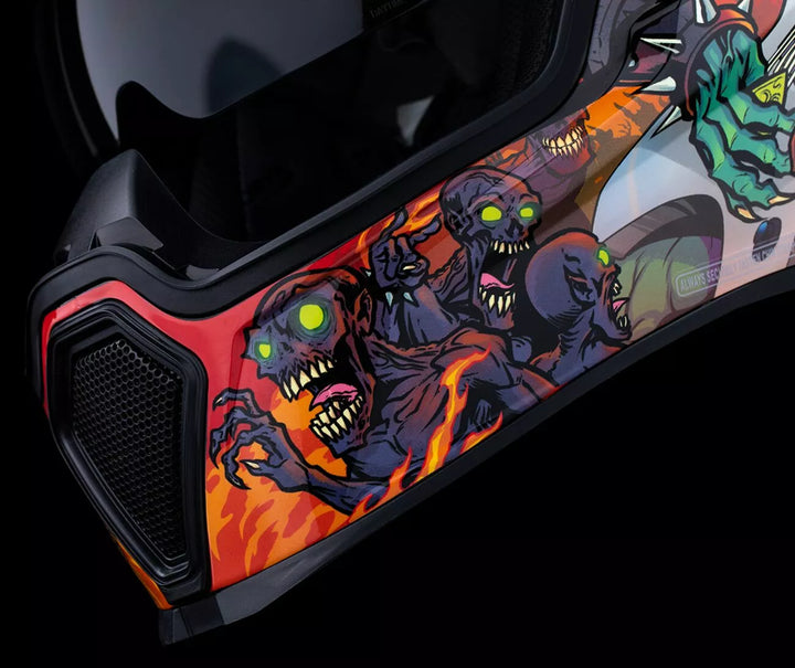 Déflecteur de respiration moulé amovible et rideau de menton, coquille de polycarbonate moulé par injection pour résistance, Système de refroidissement à canal à deux canaux encastré Fag, plaques latérales d'admission multiples surdimensi lame ICON'S R.A.U. Dispositif Bluetooth, comprend FliteShield sans brouillard Clear & RST Sunset