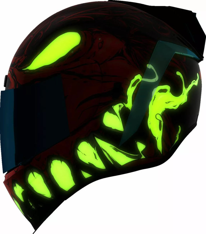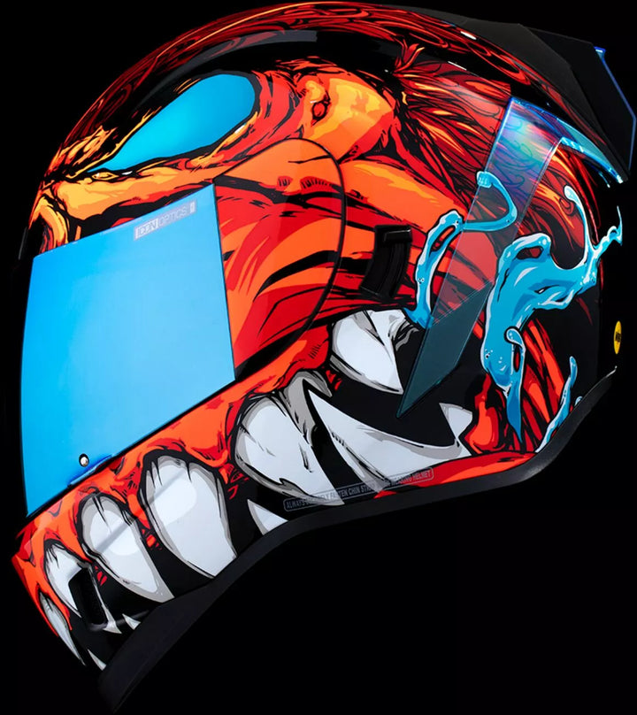 Système de ventilation continue, bouclier Icon Optics ™ sans pédé avec système à libération rapide, coquille de polycarbonate moulé par injection pour la résistance, géométrie du débit d'air interne, rôti de cou sculpté, Switsch Proock Ligne de mèche, les poches internes de haut-parleurs travaillent avec R.A.U. d'Icon. Dispositif Bluetooth, comprend Dark Smoke DropShield ™ et Rubatone Black SpeedFin ™