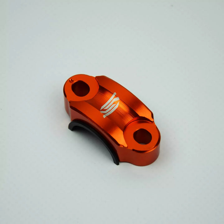Une pince à barre rotative universelle, usinée CNC, comprend un manchon en nylon à insérer entre la pince et les barres permettant à la perche de tourner lors de l'impact, anodisé pour une finition durable