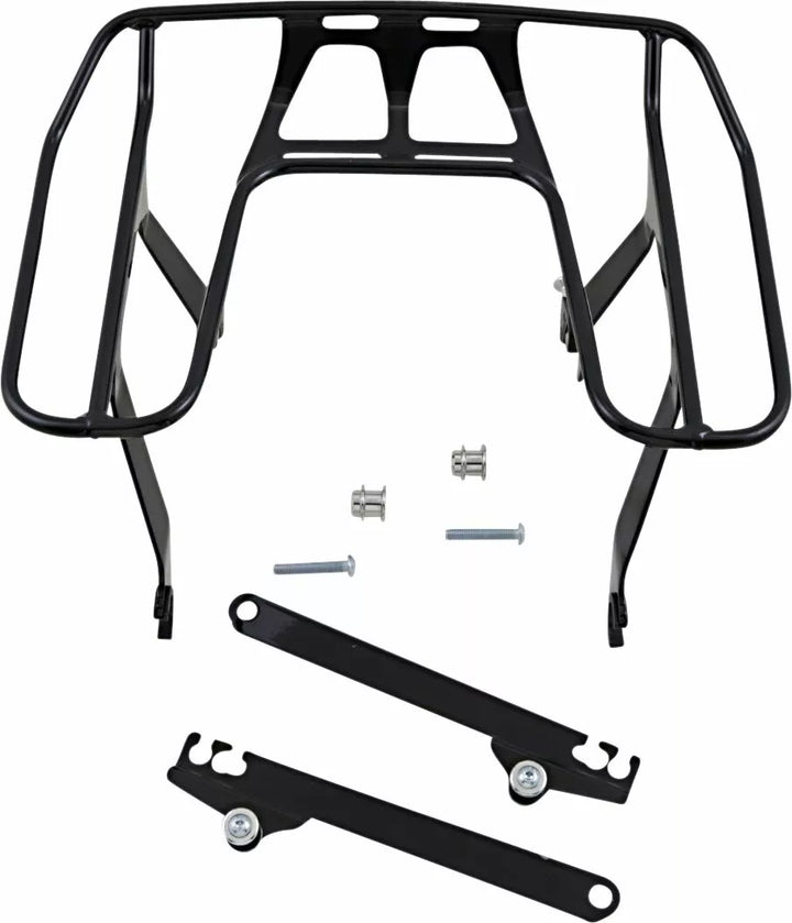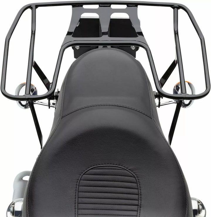 Le haut du rack est à peu près au niveau du haut du siège et chaque rack a un coup de pied à l'arrière, il y a des endroits pour fixer des cordons élastiques ou des sangles de montage afin que vous n'ayez plus à gratter votre garde-boue à vélo lorsque vous sécurisez votre cargaison, le matériel de montage alta. Kit de montage de Harley-Davidson., Si le siège du marché secondaire n'est pas des sellets ou des processeurs Lucky Daves, alors regardez soigneusement les mesures de l'ouverture pour vous assurer que le rack s'adaptera autour de votre siège de vélo.