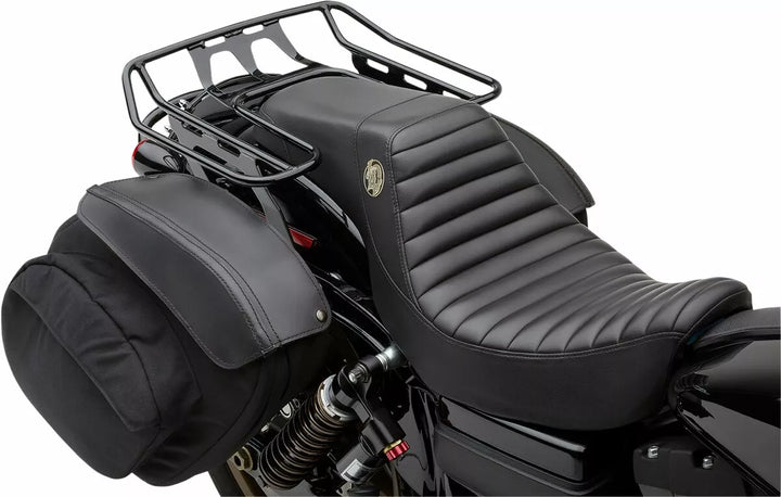 Le haut du rack est à peu près au niveau du haut du siège et chaque rack a un coup de pied à l'arrière, il y a des endroits pour fixer des cordons élastiques ou des sangles de montage afin que vous n'ayez plus à gratter votre garde-boue à vélo lorsque vous sécurisez votre cargaison, le matériel de montage alta. Kit de montage de Harley-Davidson., Si le siège du marché secondaire n'est pas des sellets ou des processeurs Lucky Daves, alors regardez soigneusement les mesures de l'ouverture pour vous assurer que le rack s'adaptera autour de votre siège de vélo.