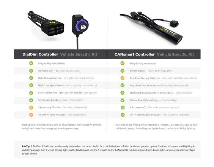 Avec Contrôleur d'éclairage Denali DialDim ™ Si vous obtenez non seulement le contrôle - vous obtenez un contrôle total. Cette version est Personnalisé pour BMW R1250 GS et GS Adventure, et fourni avec un Plug - & - Play Adapter Cela fait de l'installation un jeu pour enfants. Connectez-vous directement à la batterie et à un seul contact sous la selle - puis vous êtes prêt à atténuer, contrôler et maximiser votre lumière supplémentaire en tant que professionnel.
