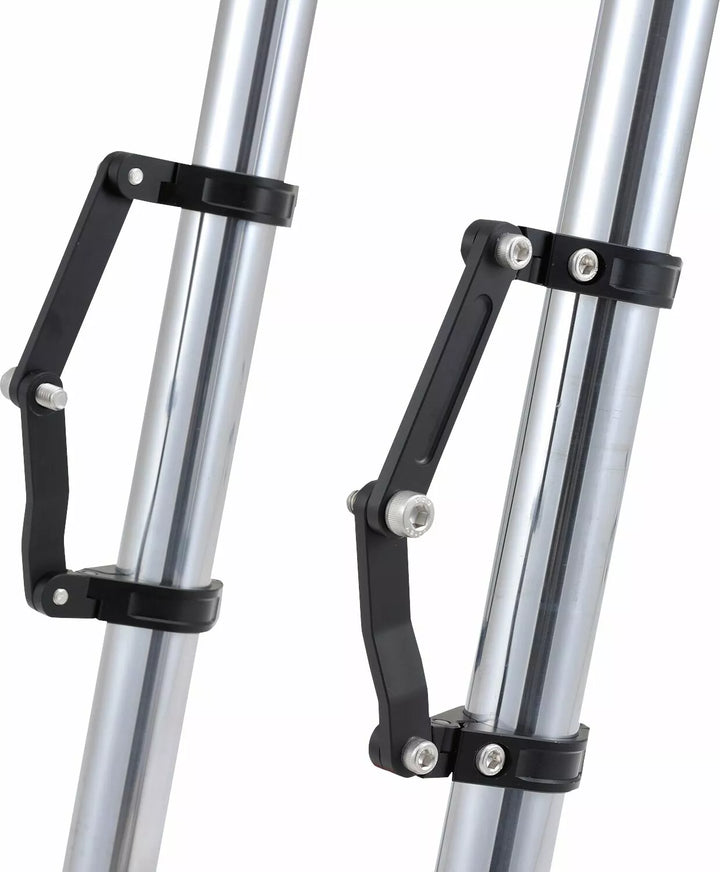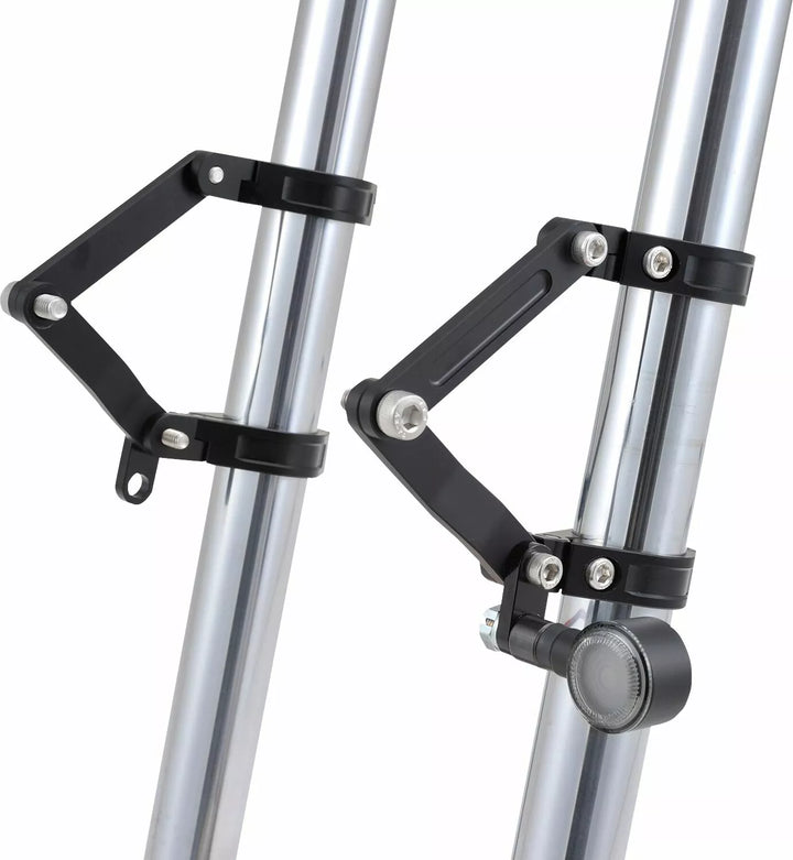 Support de phare à double axe réglable en aluminium usiné CNC en noir, la pince de fourche peut être ajustée verticalement, permettant à la position du phare d'être ajusté dans le kit de montage de l'indicateur Dire M8 de Dire M8 est inclus pour une installation discrète discrète