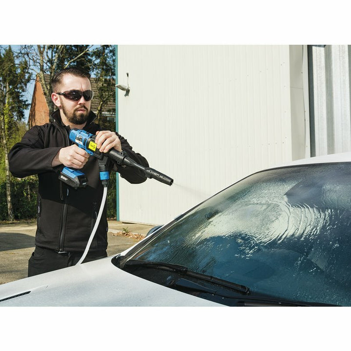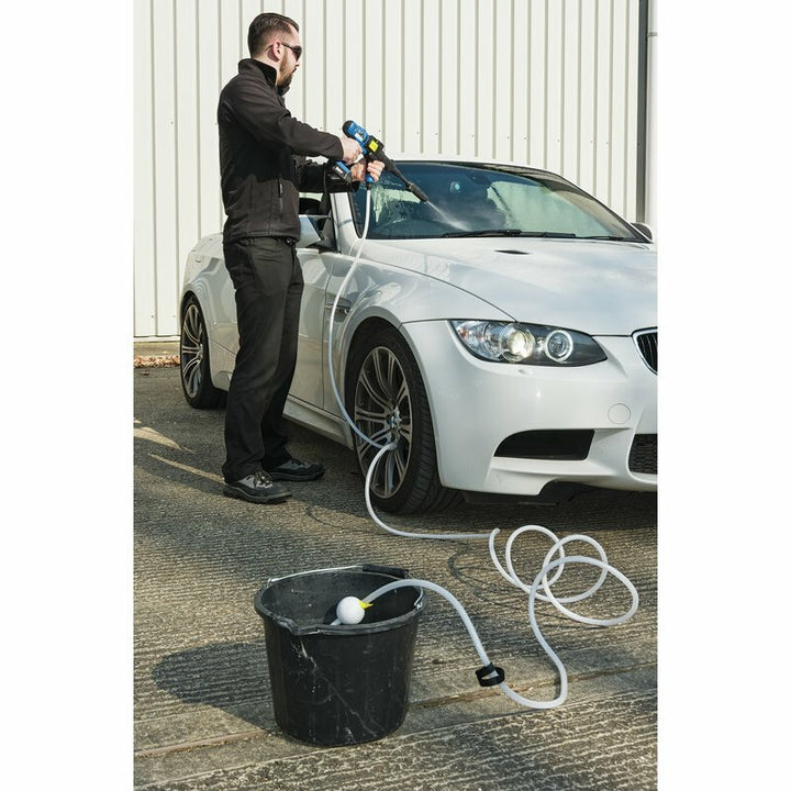 Fourni avec un tuyau auto-amorçant de 6 m, une bouteille de savon, une lance d'eau et une lance d'extension