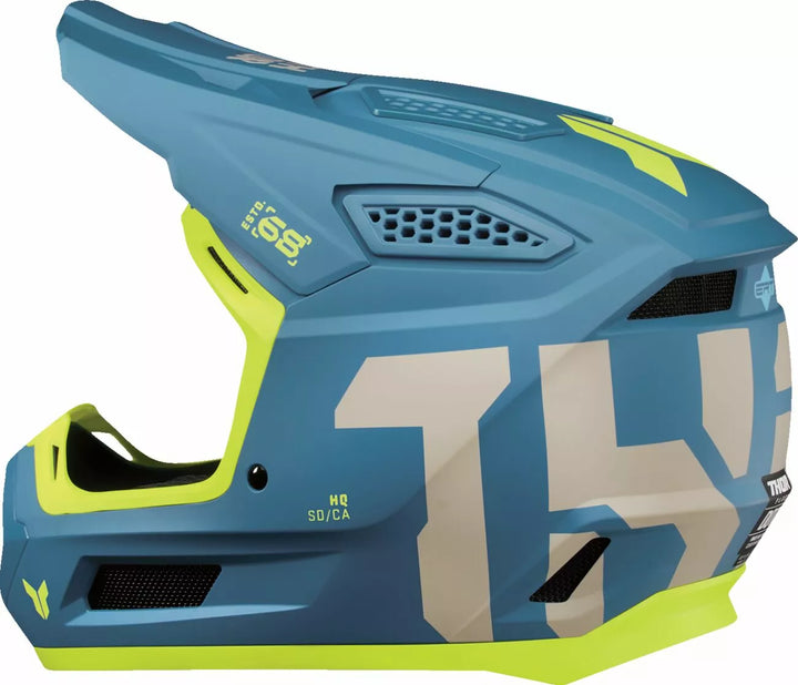 Shell PC / ABS solide et durable, la technologie de réduction d'énergie (ERT) aide à atténuer l'énergie à impact linéaire et rotationnel, la doublure d'impact EPS à double densité de première densité, 13 ports de ventilation d'admission / d'échappement, une visière ABS flexible avec des coussinets de rétention en snap en acier en acier en acier inoxydable et une caractéristique enclen
