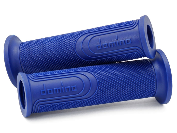 Paire de poignées de guidon en caoutchouc thermoplastique avec des boutons coniques.