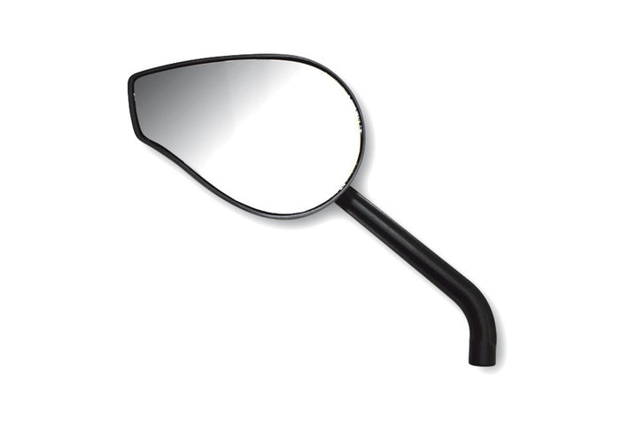 Miroir en aluminium plaqué chromé avec une tête coupée ovale et un bras plié. Comprend un adaptateur supplémentaire pour Harley Davidson et pour Yamaha, approuvé par E.