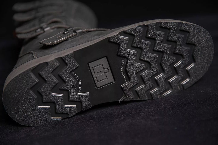 Supérieur en cuir premium combiné avec des semelles extérieures résistantes à l'huile / glisser pour un châssis à cinq coffres accidenté permettent une fermeture à glissière latérale confortable pour les boucles en nylon et les boucles en nylon résistantes et les plus difficiles à impacter pour le sage de mousse EVA à la mousse intérieure EVA de la mousse de shif de renom