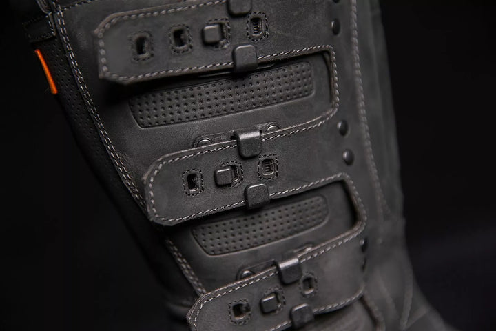 Supérieur en cuir premium combiné avec des semelles extérieures résistantes à l'huile / glisser pour un châssis à cinq coffres accidenté permettent une fermeture à glissière latérale confortable pour les boucles en nylon et les boucles en nylon résistantes et les plus difficiles à impacter pour le sage de mousse EVA à la mousse intérieure EVA de la mousse de shif de renom