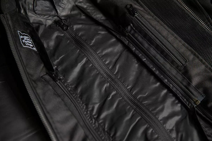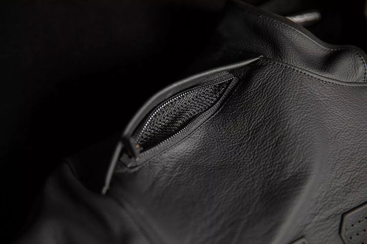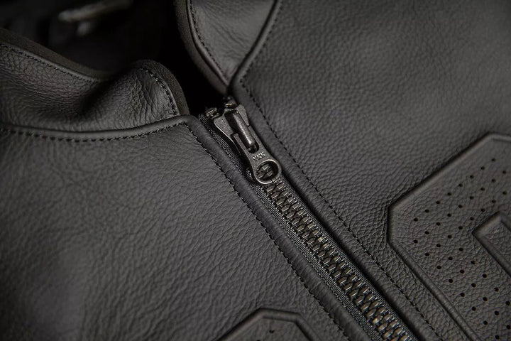 Châssis en cuir et textile durables, panneau de filet rangeable avant Airfly ™ Airfly ™, perforation au laser à la poitrine, évents de fermeture à glissière aux épaules, poignets et dos, panneaux d'expansion élastiques aux coudes et en haut du dos, tour de taille, classement de classe insultable Insultable EN17092-3: 2020-AA Classe AA