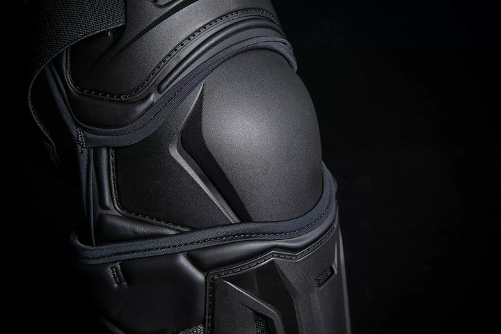 Le châssis à bio-FOAM et à maille d'air ventilé est jumelé pour articuler les coquilles moulées par injection avec des chanels de flux d'air, la conception à profil faible s'adapte sous la plupart des pantalons tandis que les sangles de réglage à double étreinte gardent les protecteurs sécurisés en place le niveau de protection des protecteurs d'impact 1.