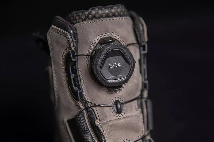 Superbe en cuir premium Caractéristiques d'une finition résistante à l'eau, des revêtements imperméables d'événement respirant aident les semelles extérieures en caoutchouc à huile / à glisser à sécher à sécher et à glisser offrent des performances de moto à cellule ouverte en polyuréthane à cellules intérieures, BA. L'ajustement confortable, les deux inserts D3O® fournissent une couverture de la cheville, des capuchons d'orteils en caoutchouc renforcés, des accents de talon réfléchissants et des nœuds d'interface de levier de vitesses