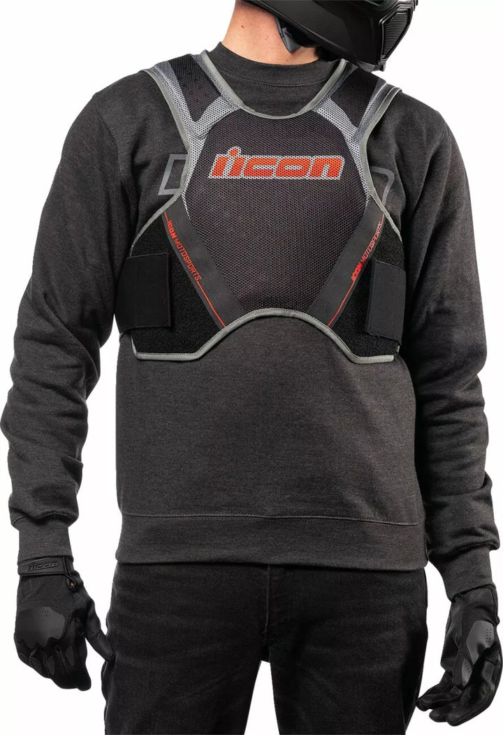 Conception à profil bas pour une utilisation sous une veste, châssis de maillage Iron Weave ™, Protecteur d'impact thoracique D3O® CP1, Protecteur d'impact de dos D3O® VIPER, STRAPIDE ÉLASTIQUE Un ajustement réglable, Protecteur thoracique Sublimated, Niveau 1.