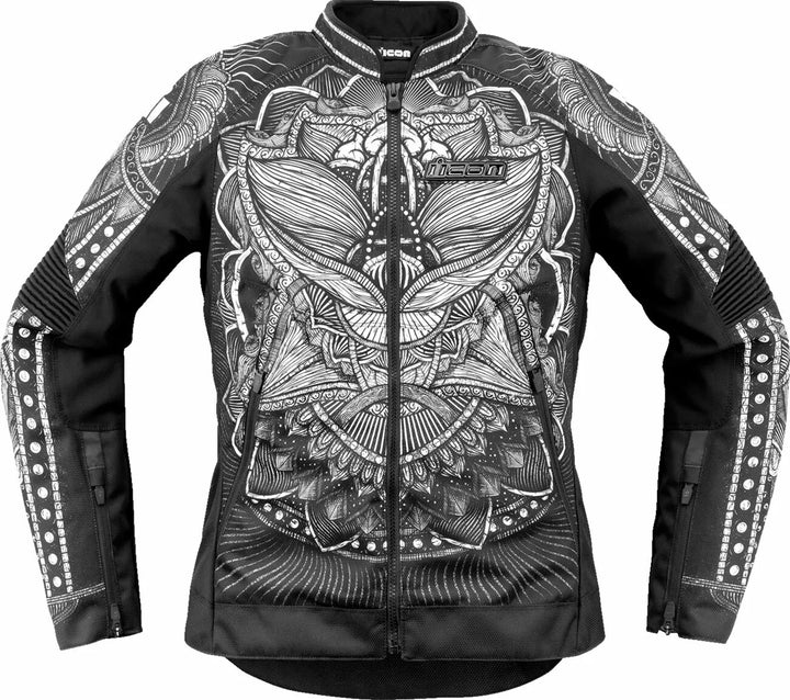 Veste femme NOBLE ™ Overlord3 avec Allover imprimé sur un châssis en polyester 1680D et 300D et des renforts internes en polyester 300D, un ajustement sportif féminin Icon® avec des bras pré-courbés et un corps en forme, des certificats de maille Pane D30, un protecteur; Protégeurs d'impact sur les coudes et les épaules, doublure de gilet isolé amovible, dos protecteur en 1621-2 niveau 1