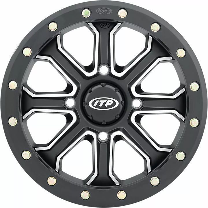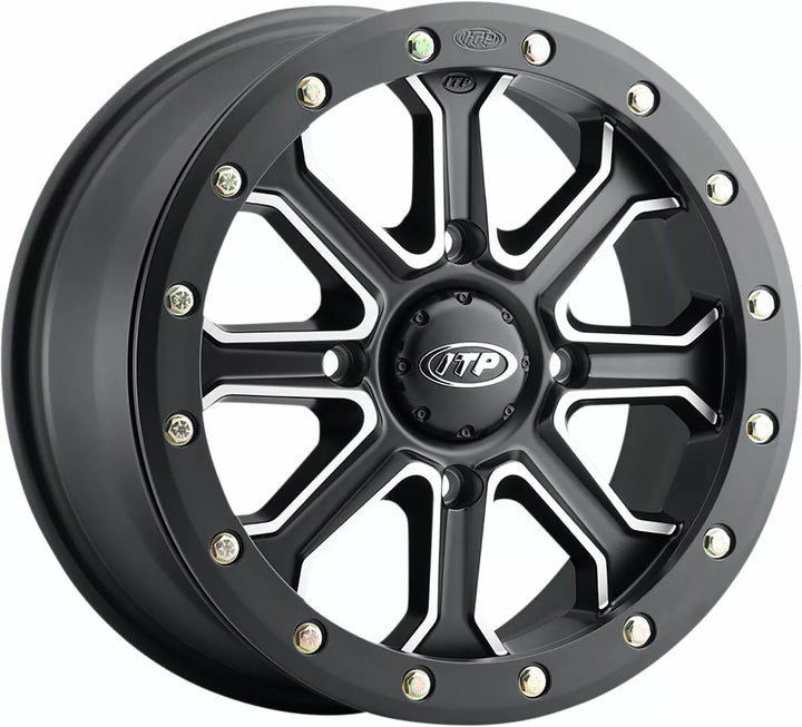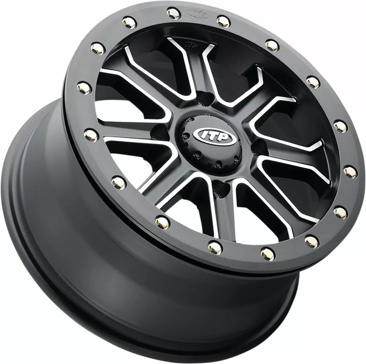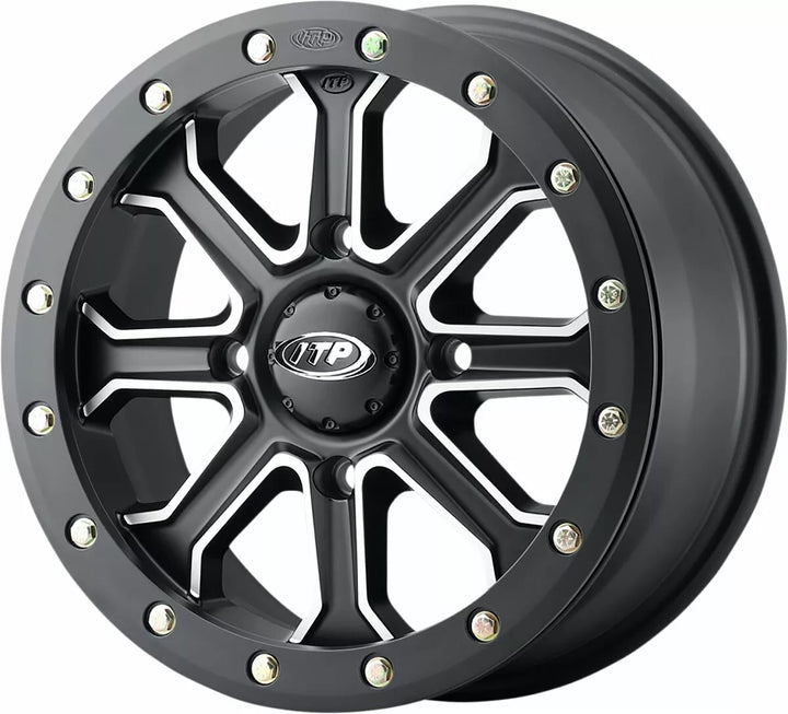 La conception Beadlock assure les perles externes restées assises dans un environnement exigeant, plus près des décalages OE pour un ajustement et des performances optimaux, une lèvre de roue intérieure exclusive "rock" ITP, une finition noire mate avec des bords usinés, un capuchon central et un rat de soupape, une charge européenne,