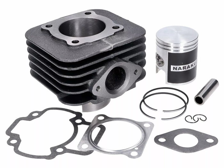 Kit de cylindre Naraku Sport Robust (fonte) avec 70 cm3 pour scooter avec moteur Piaggio refroidi par air, le piston Naraku est fourni avec un revêtement en molybdène, qui protégeait le cylindre et le piston pendant la période de course, ce cylindre de coiffe est adapté aux séries et aux systèmes d'exhabation sportifs, si le carburateur d'or Valeur), il est recommandé d'utiliser un carburateur sportif de 17,5 à 19 mm, de fournir des joints de joints de joints 70 cm3 est recommandé (vendu séparément), étendue de livraison comme indiqué sur la photo du produit