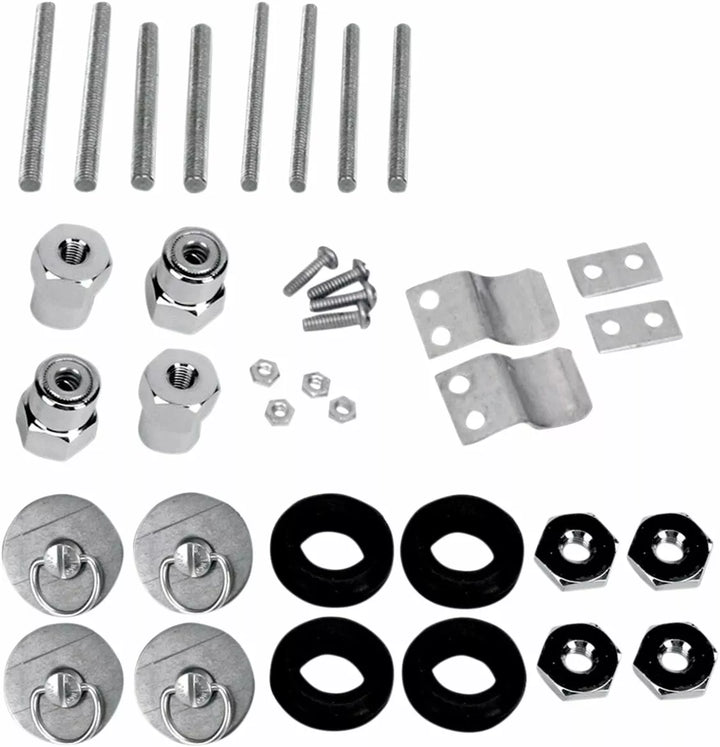 Les poteaux d'amarrage et les attaches remplacent les boulons de nette de fruits et vous permettent de mettre ou de retirer des sacs de selle par une tournure rapide des attaches QTL (quartier de verrouillage); Comprend quatre messages d'amarrage avec des attaches, des entretoises, des œillets de sac de selle, des clips de support, des écrous / boulons / attaches nécessaires et des instructions, le kit de poteau d'amarrage doit être utilisé en conjonction avec le support Saddlemen Saddlebag; Peut être utilisé pour monter des sacs de selle OEM H-D et H-D accessoires (sauf les sacs 1200) sans acheter de support supplémentaire
