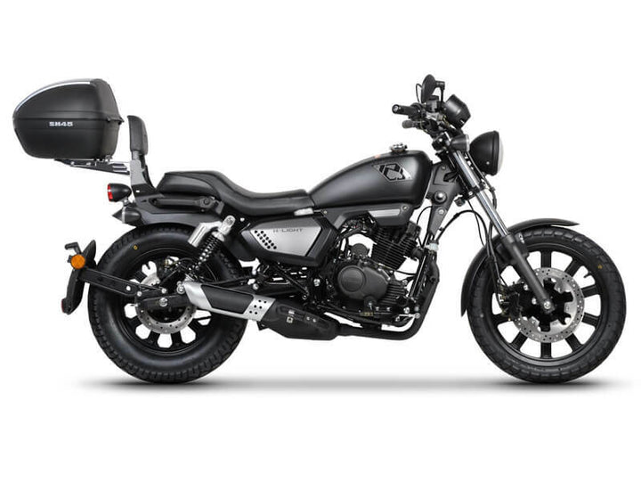 Pour s'adapter à une boîte supérieure sur un modèle personnalisé, vous devez installer le test de backster sur le modèle de moto et le porte-colis personnalisé universel, réf.: NADTN.