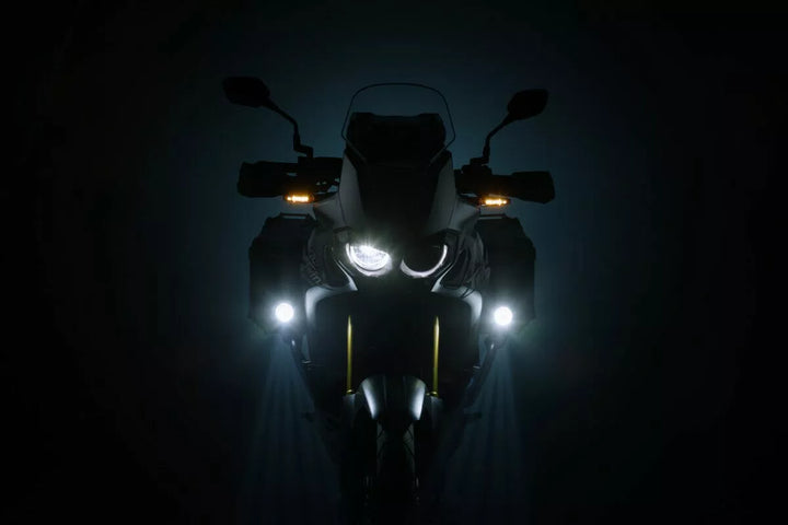 Les feux de route EVO sont idéaux pour rouler de longues distances dans des conditions routières où la distance maximale du faisceau est souhaitée pour augmenter la visibilité et la sécurité, les lumières EVO représentent une conception exceptionnelle, des normes de haute qualité et des eaux fiables et une protection contre la poussière (IP69) sans problème et sans entretien pour des années, sans problème et opération sans maintenance par le LED sans usure, consommation de la luminale, à la luminale, à 12 ans, à 12 Diamètre: 7,1 cm, épreuve de l'eau et de la poussière (IP69), se connecte directement à la moto, aucune modification de la moto électrique nécessaire, résistant aux intempéries, l'interrupteur de guidon bleu illuminé pour une main facile 27, 28 mm) ou sur des supports légers spécifiques à des vélos pour le matelage à cadre (Vendu séparé