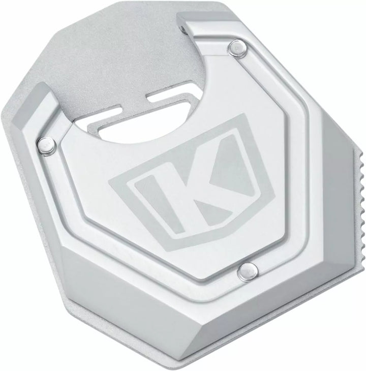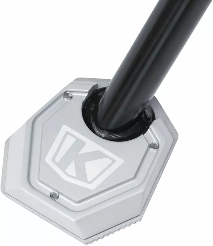 Fournit une surface supplémentaire pour empêcher le couvre-pied dans les surfaces douces, le haut en aluminium 6061-T6 usurant CNC avec une plaque inférieure en acier inoxydable au laser, le bord extérieur peut être utilisé pour Breide sur les flids sur FLTR. La plaque inférieure annonce la traction pour aider à déploier la kickstand dans des conditions humides ou boueuses, comprend trois vis M5