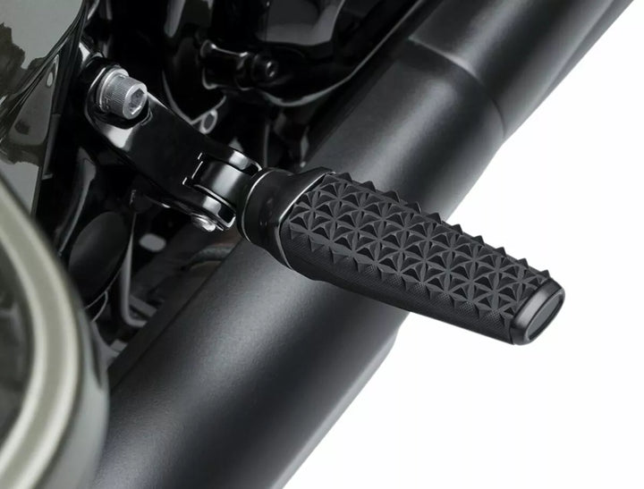 Des boîtiers en aluminium rationalisés combinés à un caoutchouc EPDM doux et à des adaptateurs en acier robuste, le caoutchouc moleté dispose d'un design d'inspiration de dent de requin et offre une traction idéale, un ajustement universel pour toutes les montures de pag autoroute Kuryakyn (ne s'adapte pas à l'entraînement OEM