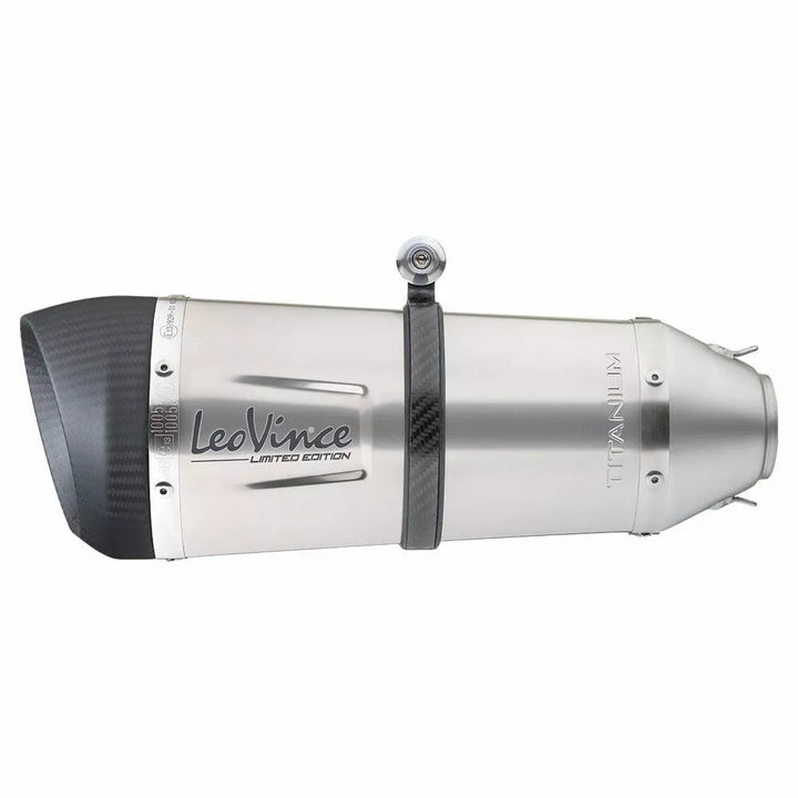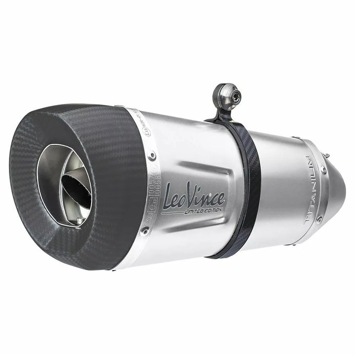 Le silencieux en titane de l'usine, la légèreté du titane et de la fibre de carbone: Leovince a combiné ces deux éléments ensemble et a créé une série d'échappements "en édition limitée"., Le manchon extérieur d'échappement de la "Titane Limited" est entièrement plus réfins Carbon., fonctionnalités, manche extérieure en titanium 1 titanium, plafond d'extrémité en carbone complet avec mathématiques mathématiques mathématiques mathématiques mathématiques "Leovince" et "Logos" Limited Edition ", logo" titanium "débossé