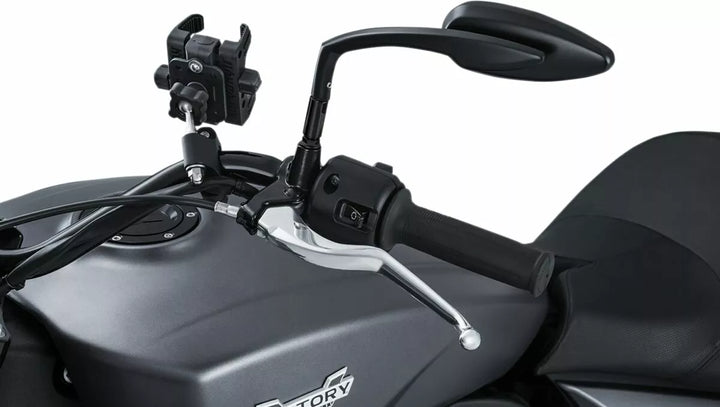 Emplacement de montage de miroir à miroir lors du montage des miroirs Kuryakyn, permettez le dégagement du maître-cylindre de frein et améliore considérablement la visibilité, augmentez la position de montage d'environ 1-1 / 2 ", les modèles de construction en acier inoxydable de qualité14 -'16 et les modèles de victoire (tous sauf la vision).