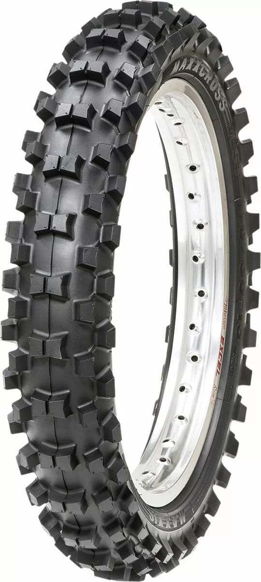 Maxxcross MX-St est conçu pour rivaliser aux niveaux élevés de motocross et de supercross. Conçu et testé avec le champion 7X Supercross Jeremy McGrath, le nouveau modèle de friandise, le composé et la composition des pneus la stabilité, la prévisibilité et la traction que les niveaux supérieurs de la demande de motocross, le modèle de traitement conçu pour optimiser la traction et le freinage effectuent des conditions intermédiaires aux sols doux, une conception de carcasse pliable légère améliore le confort de concours, la concours et les rides de la compétition, les composés spécifiques offrent des composés spécifiques à la compétition, des compagnons de concours, de la course spécifiques aux composés