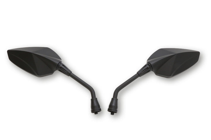 Miroir universel Matt-Black dans un design sportif. Le miroir en plastique est renforcé par une manche conjointe millée au CNC. Approuvé en ligne.