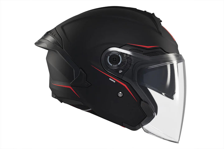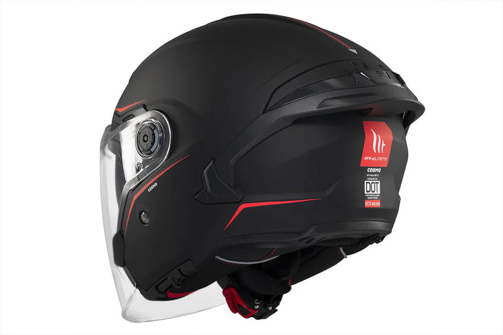 MT Cosmo SV est l'une des grandes nouvelles des casques MT pour le casque de demi-jet moderne 2024-un jet moderne qui établit une nouvelle norme pour la sécurité, la qualité et le confort dans son segment. Il se caractérise par sa grande visière résistante à l'impact qui donne à la fois une apparence unique et une large protection.