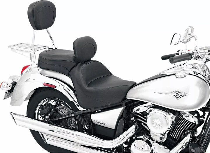 Seau avant profondément profilé; Les angles de siège passager vers l'avant pour soutenir le dos du cavalier, le prix de pouce arrondi ajuste le dossier en avant et jusqu'à 2 "pendant que vous êtes assis, amovible de plaquette de dossier de conducteur de conducteur 7" H x 12 "W x 1,5" pas de goujons ou conchos pour un aspect propre et lisse, les ailes de support en acier intégrées dans le dossier de l'arrière-arrière, vous êtes en arrière Couverture de vinyle de qualité supérieure, de qualité supérieure, dossier de passagers vendu