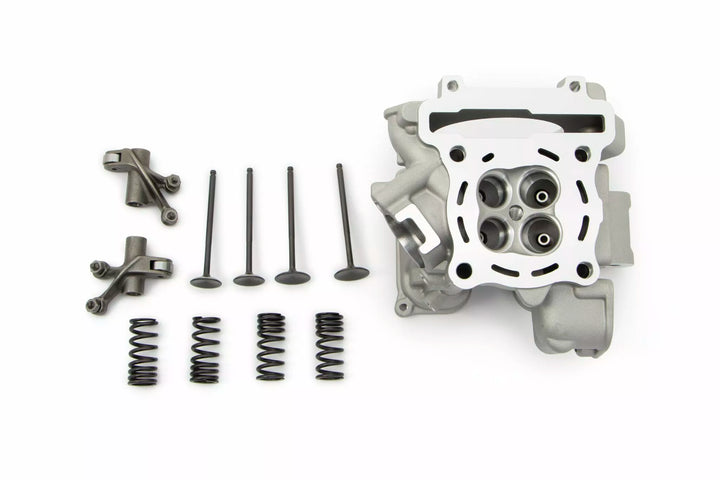 Big alésage et toujours pas assez? Ensuite, nous avons la culasse à 4 soupapes Naraku Racing 4-soupapes de 66 mm, une augmentation de l'apport, des ressorts de valve renforcés et des valves plus grandes (23/25 mm). Convient à Yamaha X-Max, WR, YZF-R 125 et autres cyclomoteurs 125cc avec le moteur YI-3, les Jets ou le système d'injection doivent être ajustés (comme avec Masossi Force Master). La culasse convient au cylindre Naraku Big Bore NK600.76 avec un alésage de 66 mm, chambre de combustion: 66 mm. Vannes d'entrée: 25 mm. Sortie: 23 mm