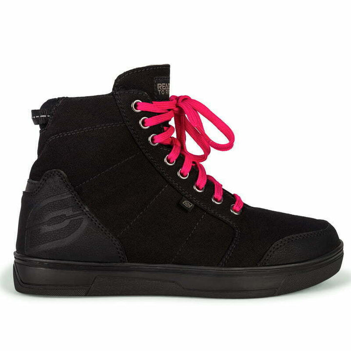 Chaussures de moto confortables en tissu de coton en tissu en microfibre avec une alimentation respiratoire dans le réseau de polyester. Ils ont des vannes à l'intérieur, des renforts de la cheville et du talon, des coutures doubles, un chapeau d'orteil raide et une semelle à glissement. La semelle intérieure antibactérienne donne un sentiment de fraîcheur.