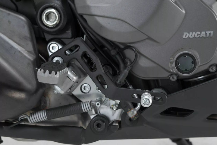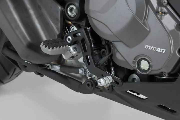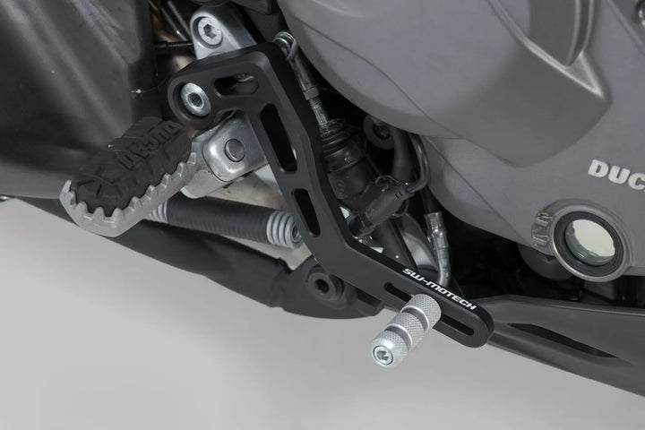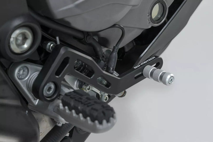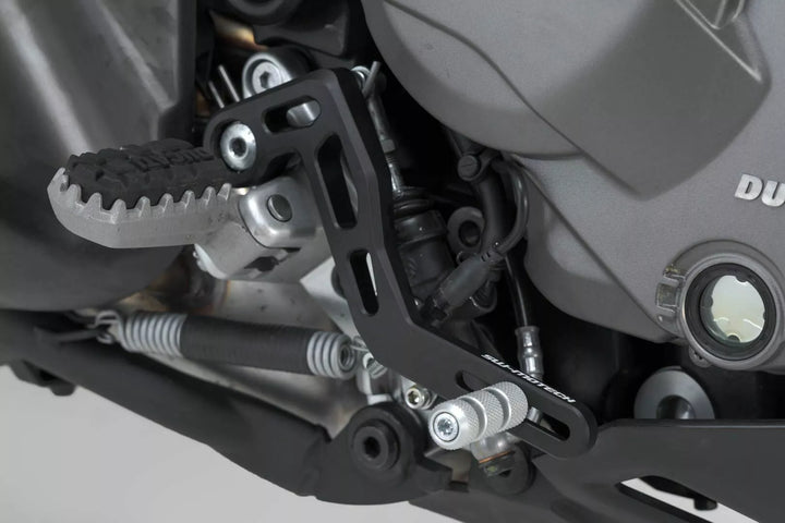 Bras de vie en aluminium spécifique au vélo, construction robuste, ajustement parfait: aluminium enrobé par CNC, Hart-Coat ᆴ enduit, broyée de haute qualité pour une stabilité maximale, Treat Street inclus par défaut dans la livraison. Slipping., La plate-forme comprend diverses positions réglables, la bande de roulement d'aventure pour les tournées hors route (vendues séparément), 1 x pédale de frein, instructions de montage, matériau de montage