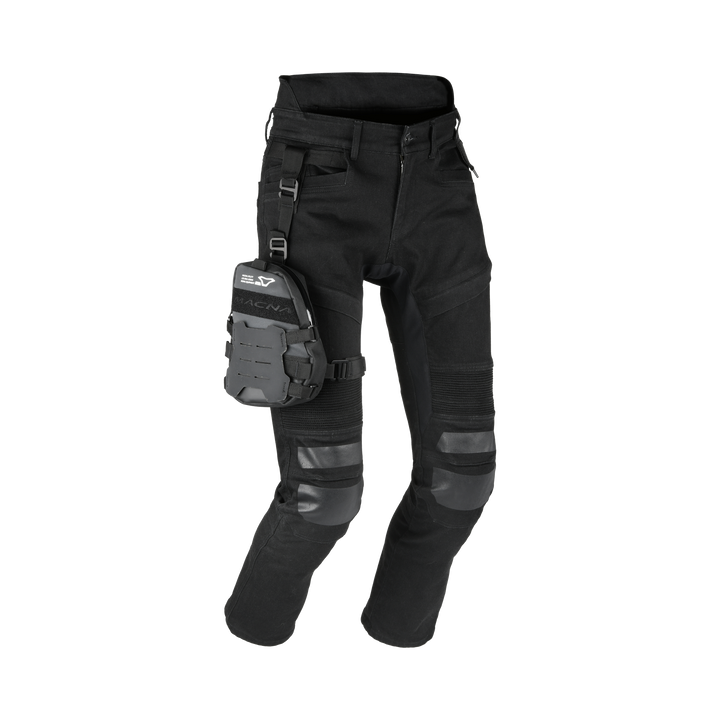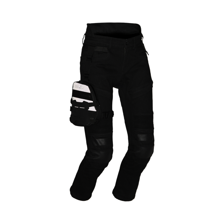 Peut être porté directement sur la ceinture ou sur un pantalon préparé pour le sac de jambe, comme le jean indax de Macna