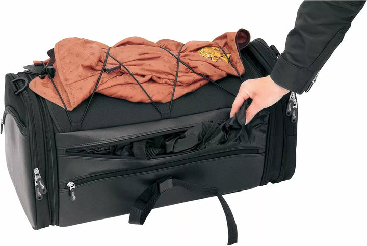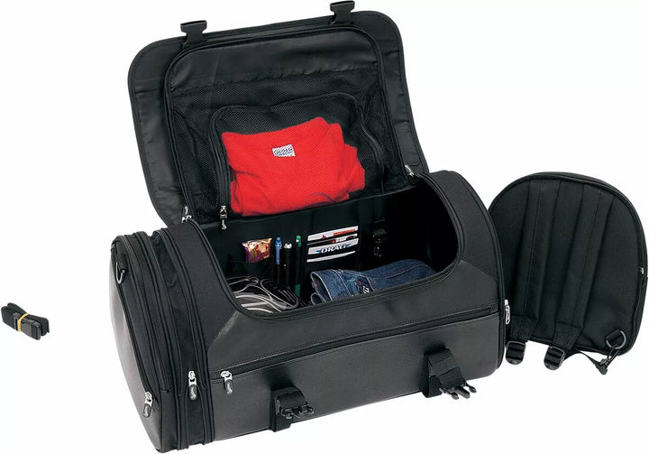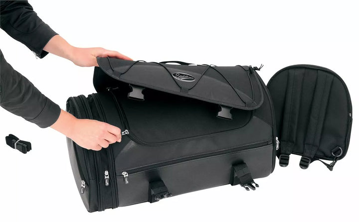 Le système de montage polyvalent s'adapte pratiquement à tous les racks montés sur tronc ou autonomes, un système de montage universel de sangle conçu pour une attachement facile au tronc ou à des racks à bagages montés séparément, une extrémité dispose d'un sac à dos zippé, tandis que l'autre a un panneau d'expansion de 2 ", un panneau d'extension complet de 2" complet, complet. Top vide, grand et facile à ouvrir pour un emballage rapide, quatre poches à fermeture éclair extérieures, la poignée de transport supérieure et les bretelles incluses pour la facilité de transport, construites en UV, à l'eau et aux intempéries de 1 200 detins Saddleuff ™ et Dadlefue. Également inclus, Dimensions: 24 "L x 11,5" H x 12 "D