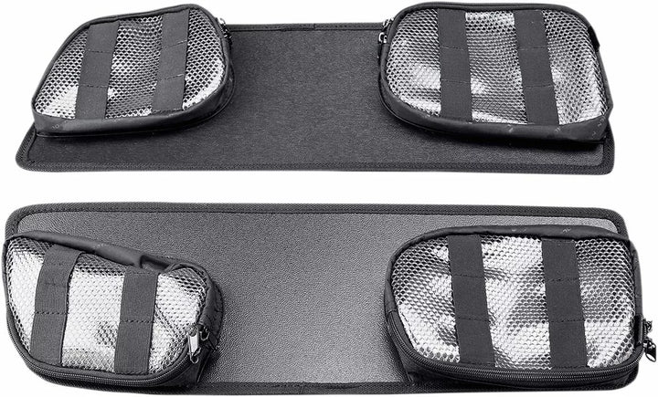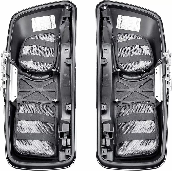 Les organisateurs de couvercle offrent un excellent espace pour stocker de petits articles sous le couvercle de sac de selle, 2 poches à fermeture éclair avec des gardiens élastiques qui sont super pour contenir une lampe de poche, des clés et d'autres articles similaires, ces sandwichs entre le système de verrouillage du couvercle