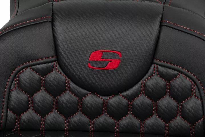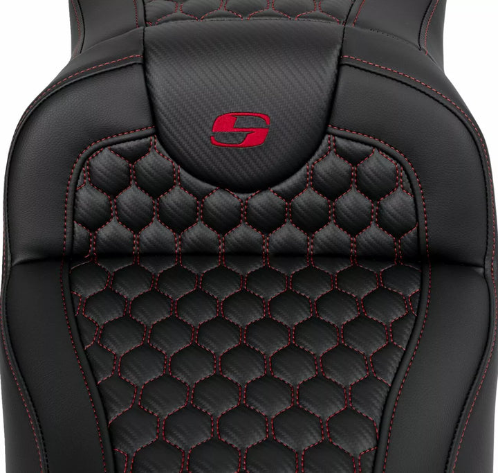 Each Seat Combines a Gel-Core ル Interior and Pro-Foam ル To Create A Foam With A Balance of Compression and Resilience Gear Long Distance Comfort, Pro-Foam ル Unique Molding Process Creates, See Elevae Resistant, Self- Durability as well as Comfort, Honeycomb (HC) Pattern Incorporates Modern Geometry In A Stylish Seat Cover, Saddlegel ル In Front and Real Reduces Tailbone Pressure and Increases Circulation and Comfort for Both Driver and Passager, conçu et fabriqué aux États-Unis