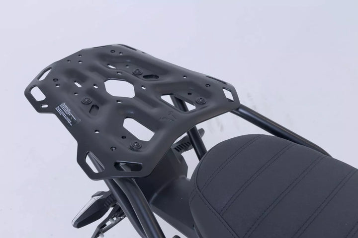 Rack extrêmement robuste pour les longues visites et les promenades hors route, les processus de fabrication exclusifs et sa forme optimisée confèrent une dose supplémentaire de stabilité au rack d'aventure, sa durabilité extrême pendant les vibrations, les impacts et le poids élevé étaient des tests, des caisses multista-trax. Sysbag with adapter plate are available separately with the appropriating adapter kit, easy rigging of luggage on numerous, Lasge lashing eyes, threading of 25 mm fasteners Possible, Especialy Large Contact Surface (width: 32.9 cm cm), easy installation on original attachment points with bike-specific attachment elements, effective corrosion protection from black powder coating, made of light but sturdy 4mm-thick aluminum Alloy, inclus dans livraison, 1 x aventure, 1 x aventure.