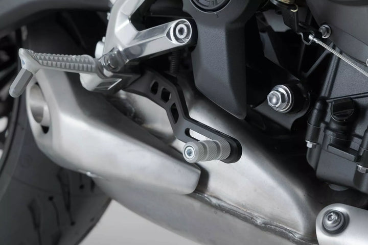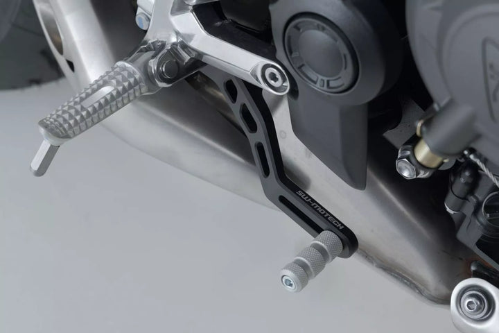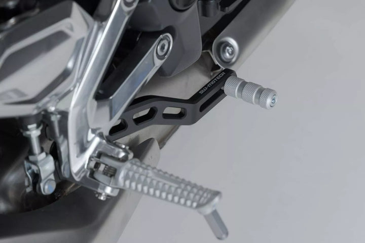 Bras de vie en aluminium spécifique au vélo, construction robuste, ajustement parfait: aluminium enrobé par CNC, Hart-Coat ᆴ enduit, broyée de haute qualité pour une stabilité maximale, Treat Street inclus par défaut dans la livraison. Slipping., La plate-forme comprend diverses positions réglables, la bande de roulement d'aventure pour les tournées hors route (vendues séparément), 1 x pédale de frein, instructions de montage, matériau de montage