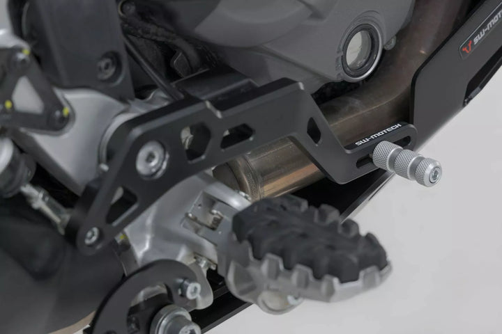 Bras de vie en aluminium spécifique au vélo, construction robuste, ajustement parfait: aluminium enrobé par CNC, Hart-Coat ᆴ enduit, broyée de haute qualité pour une stabilité maximale, Treat Street inclus par défaut dans la livraison. Slipping., La plate-forme comprend diverses positions réglables, la bande de roulement d'aventure pour les tournées hors route (vendues séparément), 1 x pédale de frein, instructions de montage, matériau de montage