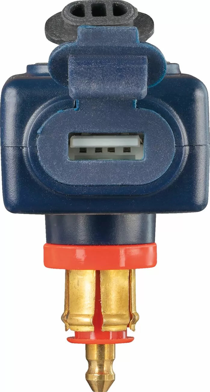 USB Smart 3300MA TRANNEUR DUAL SORTIE, avec socket de vélo, le chargeur USB double 3300mA Portable avec port USB-A et USB-C, avec un connecteur de fiche de vélo à 90 °. Port USB-C Port-90 ° Elbow Your Pild., Puissant 3300mA de charge Le courant livré à partir du port ou du courant USB-C est partagé si le port USB-A est également utilisé et sécurisé pour tous les appareils USB-C et USB-A sur la batterie, le plomb-acid (PB / AGM) ou le lithium-ion (Lifepo4 / LFP) - Does-Does Not Raindre la batterie du véhicule. USB ON., Protection intégrée éteint la charge vers Päva Preven drainage., Évalué pour une utilisation normale de T ° et en plein air.