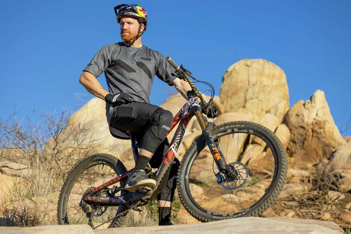 Conception et construction d'inspiration du motocross pour les performances MTB et e-MTB, tissu principal en polyester durable, manches hybrides, matériaux de mèche d'humidité