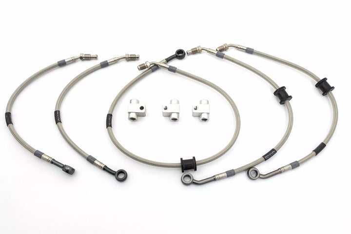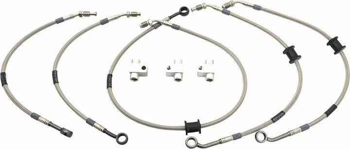 Amélioration significative de la réponse de freinage., Point de freinage stable, aucune extension du Hosen à des températures les plus élevées., TRW Motorcycle Steel Tressé Les lignes de freinage conviennent à tous les systèmes de freinage combinés à double ABS et à double combiné, même pour les modèles de moto les plus récents. FMVSS standard de la sécurité des véhicules 106., TRW Motorcycle Steel Treded Freed Tyrs est livré avec des couvertures transparentes et des raccords en aluminium dans la couleur du titane en tant que standard., Des couvertures et des raccords sont également disponibles dans de nombreuses couleurs, caractéristiques et conception individuelle.
